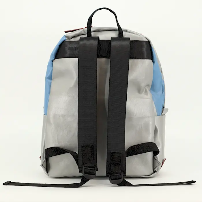 • Gerecycled vrachtwagenzeil met blauwe accenten