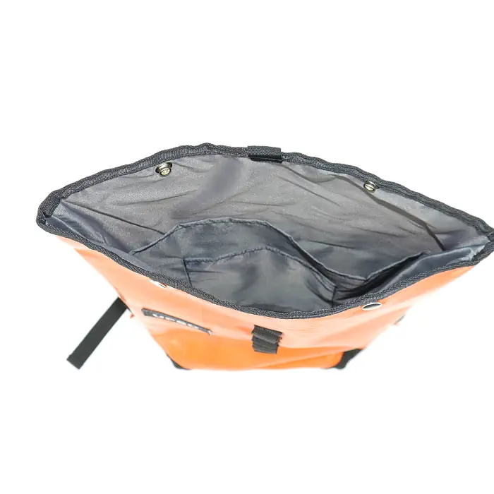 Deze oranje rugzak is compact, licht en duurzaam, ideaal voor dagelijks gebruik. Dankzij de rolsluiting kun je het volume snel aanpassen aan je plannen: van lichte rit tot volle dag. Gewatteerde rug, verstelbare schouderbanden en gevoerde binnenkant maken hem comfortabel en beschermend. Versterkte hoeken verhogen de levensduur, terwijl externe lussen zorgen voor extra draagopties voor lamp, slot of helm. Praktisch, robuust en helemaal in het oog springend.