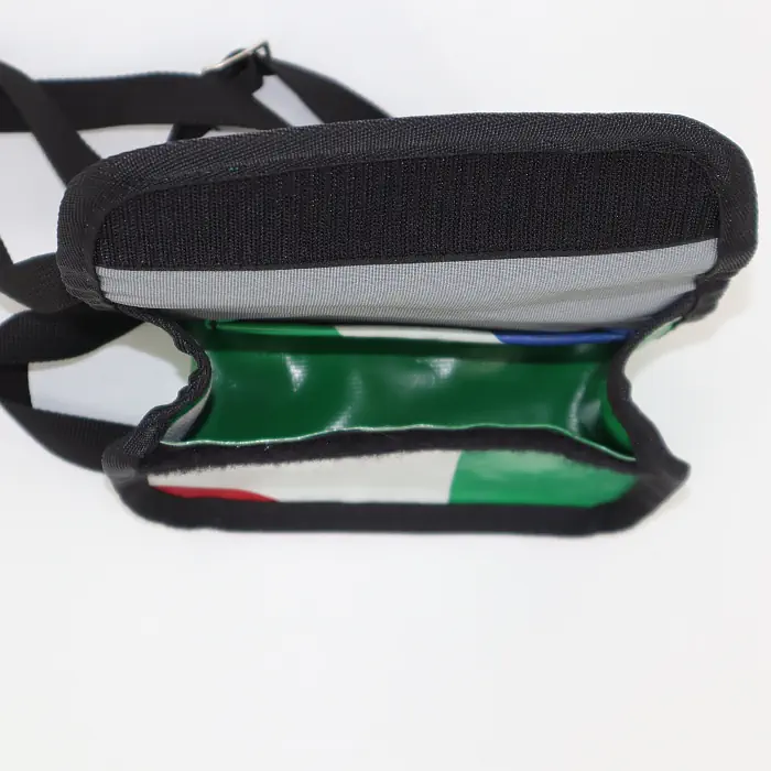 De Washington Wallet in rood, groen en wit is klein van formaat maar groot in mogelijkheden. Draag hem zoals jij wilt: aan stuur, onder zadel, riem of over je schouder. Gerecyclede brandslangriemen en een afneembare schouderriem maken hem flexibel, terwijl het UPSO-label met LED-lus voor veiligheid en karakter zorgt. Binnenin is voldoende ruimte voor je essentials.